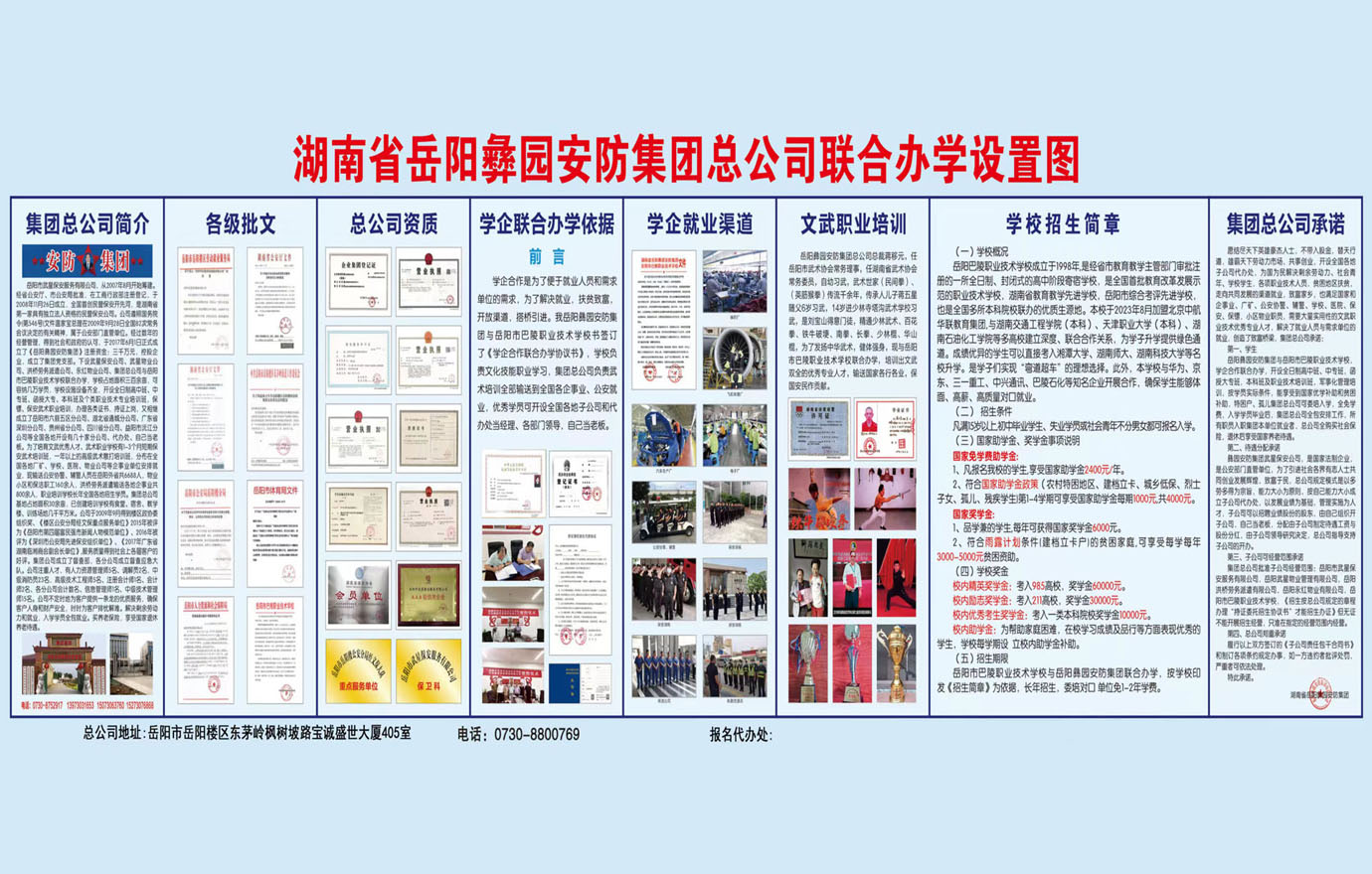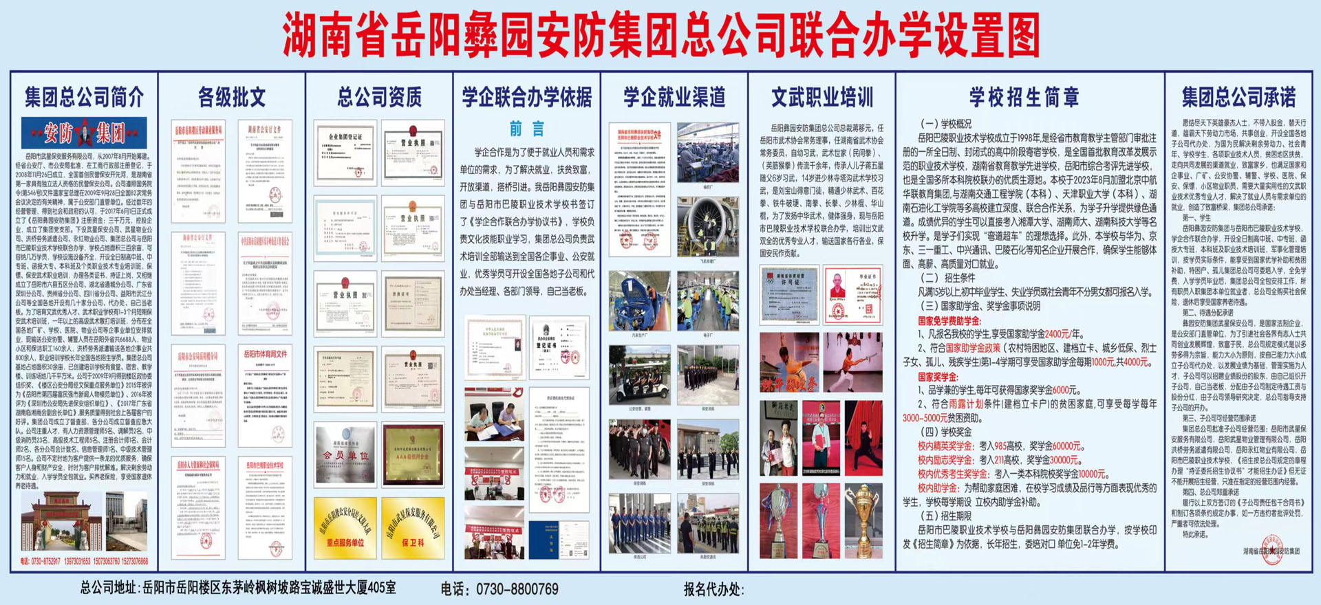 岳陽(yáng)市武星保安服務(wù)有限公司,從2007年8月開(kāi)始籌建。經(jīng)省公安廳、市公安局批準(zhǔn),在工商行政部注冊(cè)登記,于2008年11月26日成立,全國(guó)首創(chuàng)民營(yíng)保安開(kāi)先河,是湖南省試點(diǎn)第一家具有獨(dú)立法人資格的民營(yíng)保安公司。公司遵照國(guó)務(wù)院令(第546號(hào))文件溫家寶總理在2009年9月28日全國(guó)82次常務(wù)會(huì)議決定的有關(guān)精神,經(jīng)過(guò)數(shù)年的經(jīng)營(yíng)管理,得到社會(huì)和政府的認(rèn)可,于2017年6月1日正式成立了《岳陽(yáng)彝園安防集團(tuán)》注冊(cè)資金:三千萬(wàn)元,控股企業(yè),成立了集團(tuán)黨支部。下設(shè)武星保安公司、武星物業(yè)公司、洪橋勞務(wù)派遺公司、永紅物業(yè)公司、集團(tuán)總公司與岳陽(yáng)市新青年職業(yè)技術(shù)學(xué)校聯(lián)合辦學(xué),學(xué)校占地面積三百于畝,可容納幾萬(wàn)學(xué)員,學(xué)校設(shè)施設(shè)備齊全,開(kāi)設(shè)全日制高中班、中專(zhuān)班、函授大專(zhuān)、本科班及個(gè)類(lèi)職業(yè)技術(shù)專(zhuān)業(yè)培訓(xùn)班,保鏢、保安武術(shù)職業(yè)培訓(xùn),辦理各類(lèi)證書(shū),持證上崗,又相繼成立了岳陽(yáng)市六縣五區(qū)分公司、湖北省通城分公司、廣東省深圳分公司、貴州省分公司、四川省分公司、益陽(yáng)市沅江分公司等全國(guó)各地開(kāi)設(shè)有十幾家分公司。為了培育文武優(yōu)秀人才、武術(shù)職業(yè)學(xué)校有1-3個(gè)月短期保安武術(shù)培訓(xùn)班,一年以上的高級(jí)武術(shù)散打培訓(xùn)班,分布在全國(guó)各地廠(chǎng)礦、學(xué)校、醫(yī)院、物業(yè)公司等企事業(yè)單位安排就業(yè),現(xiàn)輸送公安協(xié)警輔警人員在岳陽(yáng)外省共6688人,物業(yè)小區(qū)和保潔職工160余人,洪橋勞務(wù)派遣輸送各地企事業(yè)共800余人,職業(yè)培訓(xùn)學(xué)校長(zhǎng)年全國(guó)各地招生學(xué)員。集團(tuán)總公司基地占地面積30余畝,已創(chuàng)建培訓(xùn)學(xué)校有食堂、宿舍、教學(xué)樓、訓(xùn)練場(chǎng)地幾千平方米。公司于2009年9月得到樓區(qū)政協(xié)委組織獎(jiǎng)、《樓區(qū)公安分局經(jīng)文保重點(diǎn)服務(wù)單位》、2015年被評(píng)為《岳陽(yáng)市第四屆富民強(qiáng)市新聞人物模范單位》、2016年被評(píng)為《深圳市公安局先進(jìn)保安組織單位》《2017年廣東省湖南臨湘商會(huì)副會(huì)長(zhǎng)單位》,服務(wù)質(zhì)量得到社會(huì)上各屆客戶(hù)的好評(píng)。集團(tuán)公司成立了督查部,各分公司成立督查應(yīng)急大隊(duì)。公司注重人才,有人力資源管理師5名、調(diào)解員2名,中級(jí)消防員23名,高級(jí)技術(shù)工程師5名、注冊(cè)會(huì)計(jì)師1名、會(huì)計(jì)師2名、各分公司會(huì)計(jì)數(shù)名、信息管理師1名、中級(jí)技術(shù)管理師 15名。公司不定時(shí)地為客戶(hù)提供一條龍的優(yōu)質(zhì)服務(wù),確??蛻?hù)人身和財(cái)產(chǎn)安全,時(shí)時(shí)為客戶(hù)排憂(yōu)解難。解決剩余勞動(dòng)力和就業(yè),入學(xué)學(xué)員全包就業(yè)。買(mǎi)養(yǎng)老保險(xiǎn),享受?chē)?guó)家退休養(yǎng)老待遇。