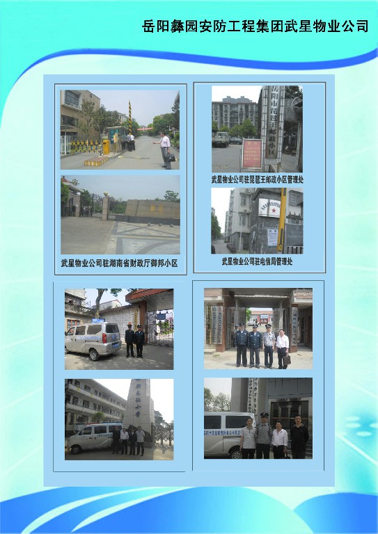 岳陽(yáng)武星物業(yè)管理有限公司繼岳陽(yáng)市武星保安公司于2012年2月成立,武星保安公司是經(jīng)省公安廳批準(zhǔn)成立的民營(yíng)保安公司,為滿(mǎn)足廣大客戶(hù)的迫切要求,公司能為客戶(hù)提供保安、物業(yè)整體服務(wù)。武星物業(yè)公司技術(shù)力量雄厚,有電梯維修工程師、園林綠化師、水電安裝工程師、消防等專(zhuān)業(yè)技術(shù)人才。為了更好地服務(wù)社會(huì)、培育特種人才,公司與岳陽(yáng)市巴陵職業(yè)技術(shù)學(xué)校聯(lián)合辦學(xué),開(kāi)設(shè)了保鏢保安武術(shù)散打班、物業(yè)管理班、園林綠化技術(shù)班、水電維修班、禮儀班,現(xiàn)有專(zhuān)業(yè)學(xué)員幾百名。公司為各黨政機(jī)關(guān)、社會(huì)團(tuán)體、廠(chǎng)礦企事業(yè)單位、金融機(jī)構(gòu)、房地產(chǎn)開(kāi)發(fā)商居民住宅、賓館、學(xué)校、娛樂(lè)場(chǎng)所等提供人力資源和技術(shù)防范服務(wù)。目前公司有幾十家大客戶(hù),公司優(yōu)質(zhì)的服務(wù)得到了客戶(hù)的好評(píng)?,F(xiàn)經(jīng)公安廳市公安局批準(zhǔn)成立了保衛(wèi)科、督查應(yīng)急大隊(duì),為客戶(hù)不定時(shí)的服務(wù)和回訪(fǎng),公司有一批業(yè)務(wù)精、能力強(qiáng)的管理人才,為客戶(hù)提供高質(zhì)量的服務(wù)。武星保安物業(yè),保您家安樂(lè)業(yè)。